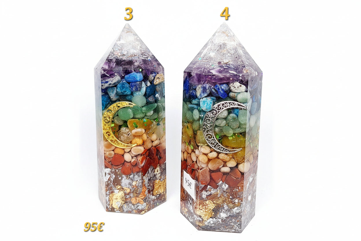 Ces orgonites sont souvent utilisées comme soutien énergétique rapide, naturel en cas d’angoisse, de stress intense ou de surcharge émotionnelle, harmonisation de lieu.